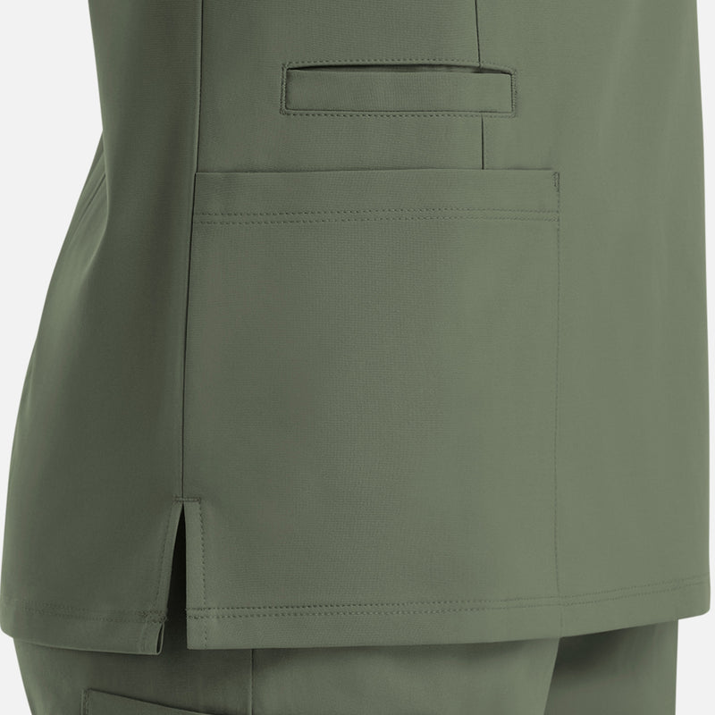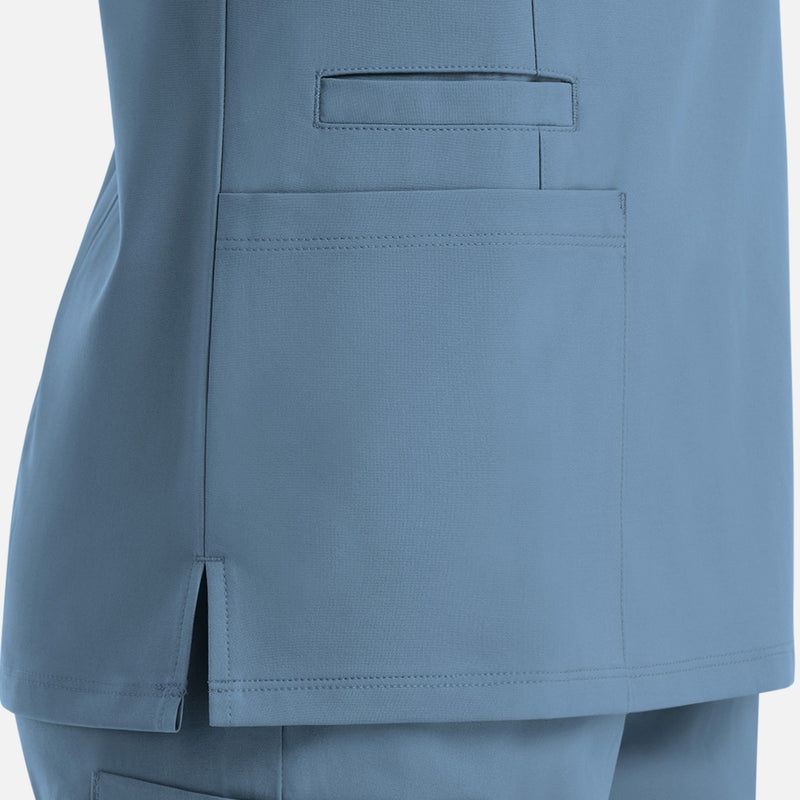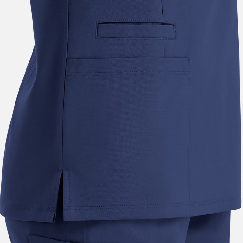 Total of 3 pockets: 2 deep front hand pockets and 1 welt accessory pocket